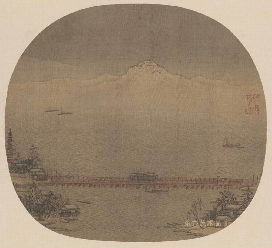| 《长桥卧波图》页 绢本设色 23.9 x 26.3 |