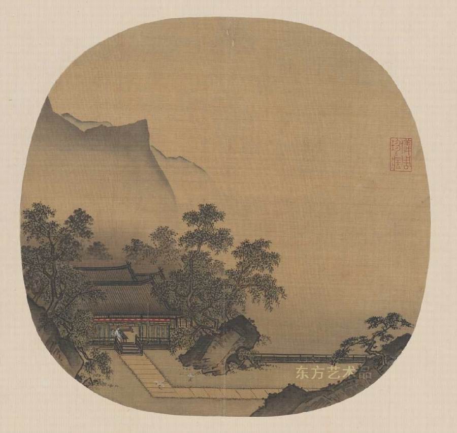 | 《溪山水阁图》页 绢本设色 24.2 x 24.7 |