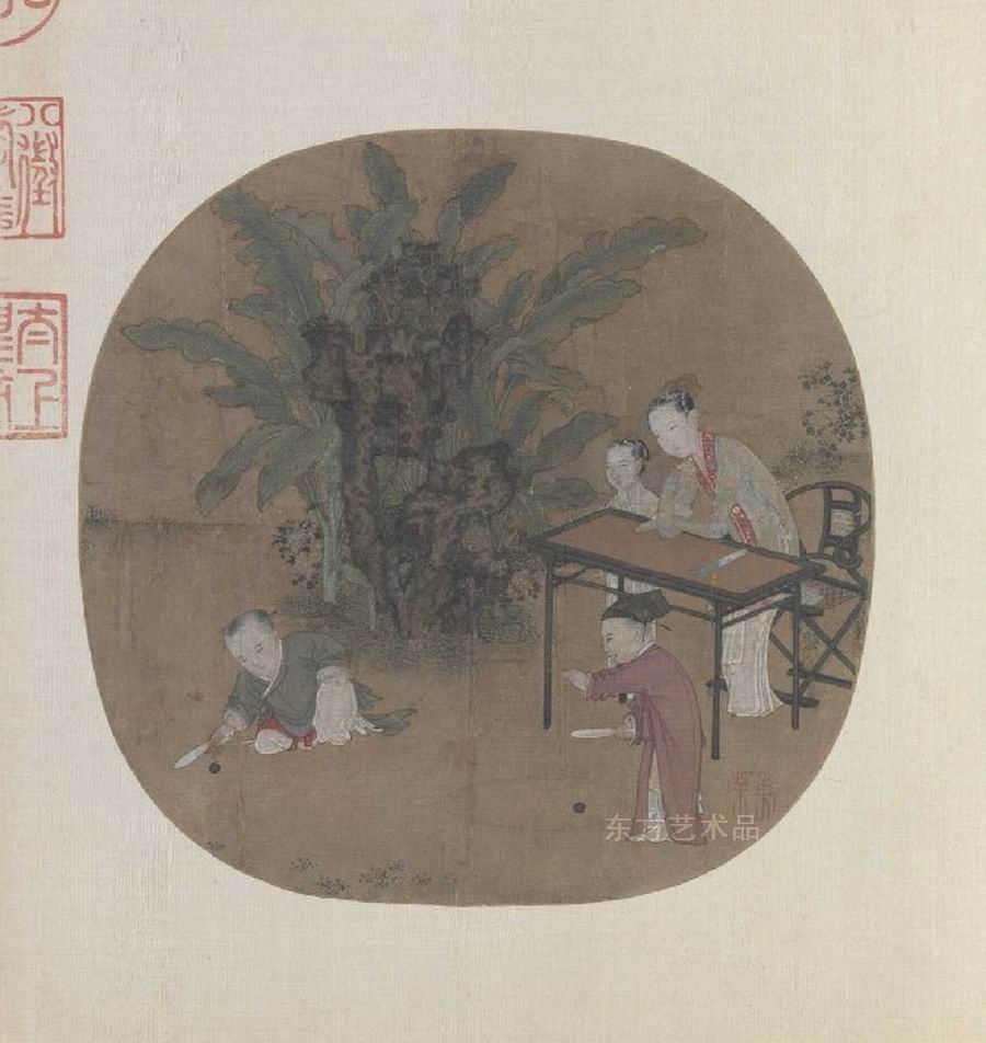 | 《蕉阴击球图》页 绢本设色 25 x 24.5 |