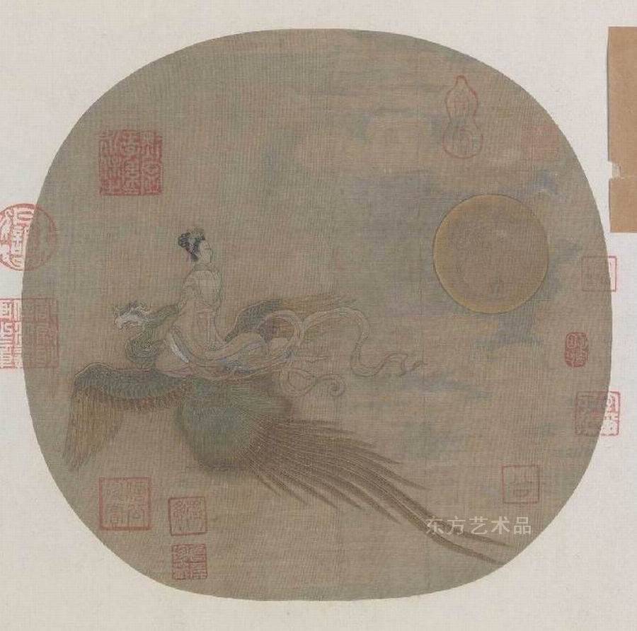 | 《仙女乘鸾图》页 绢本设色 25.3 x 26.2 |