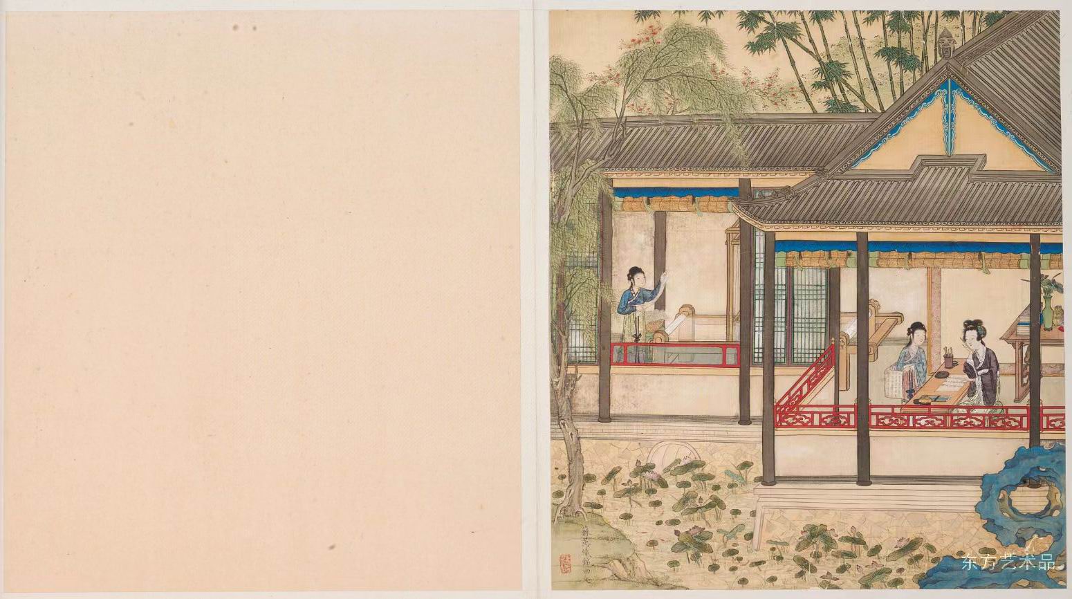 范雪仪〔清〕女,本姓淑,嫁范氏为妻,江苏苏州人氏,生卒年不详。擅人物画,题材以历史故事、神话传奇为主。是清代吴门著名女画家之一。此画册描绘了白传姬人试舞、木兰从军、公孙大姐舞剑器、寿阳梅花妆、交甫解佩、裴航蓝桥遇仙、秦女吹簫、苏惠织锦回文、张敞画眉等历史故事。(藏于北故宫) |