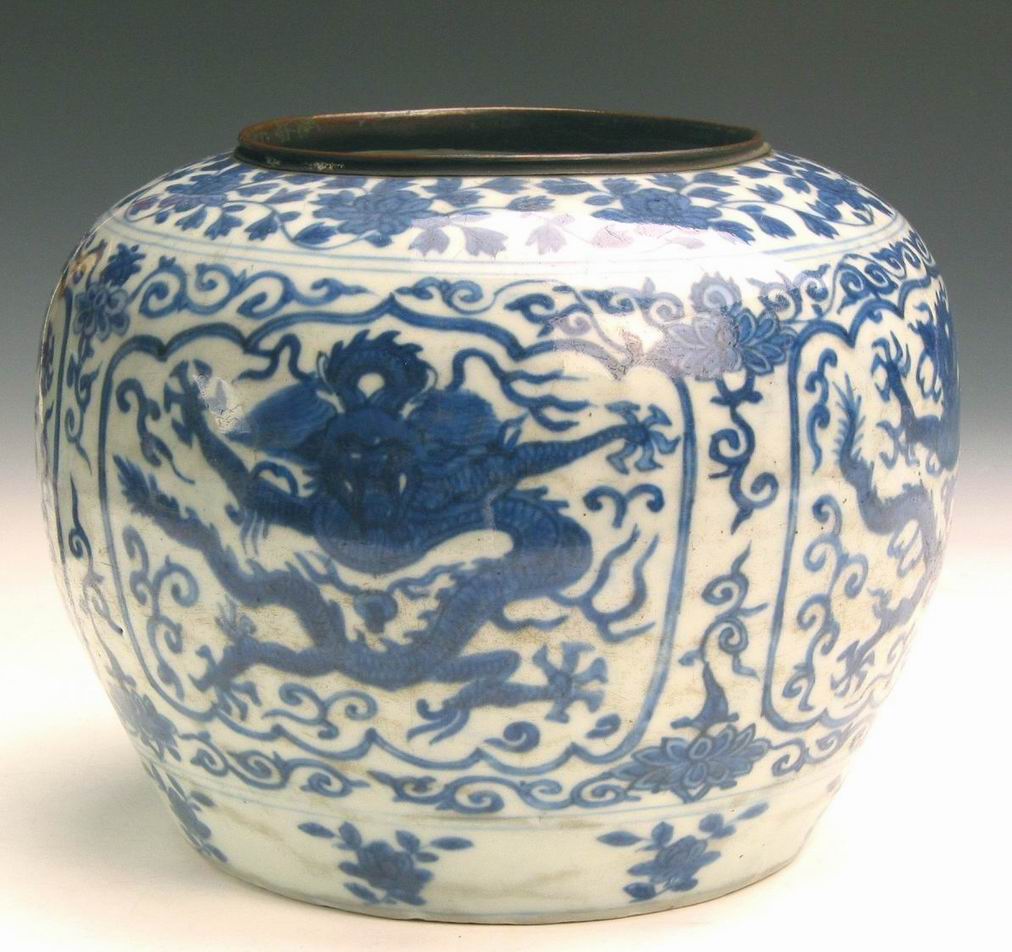 《明万历款青花龙纹罐》