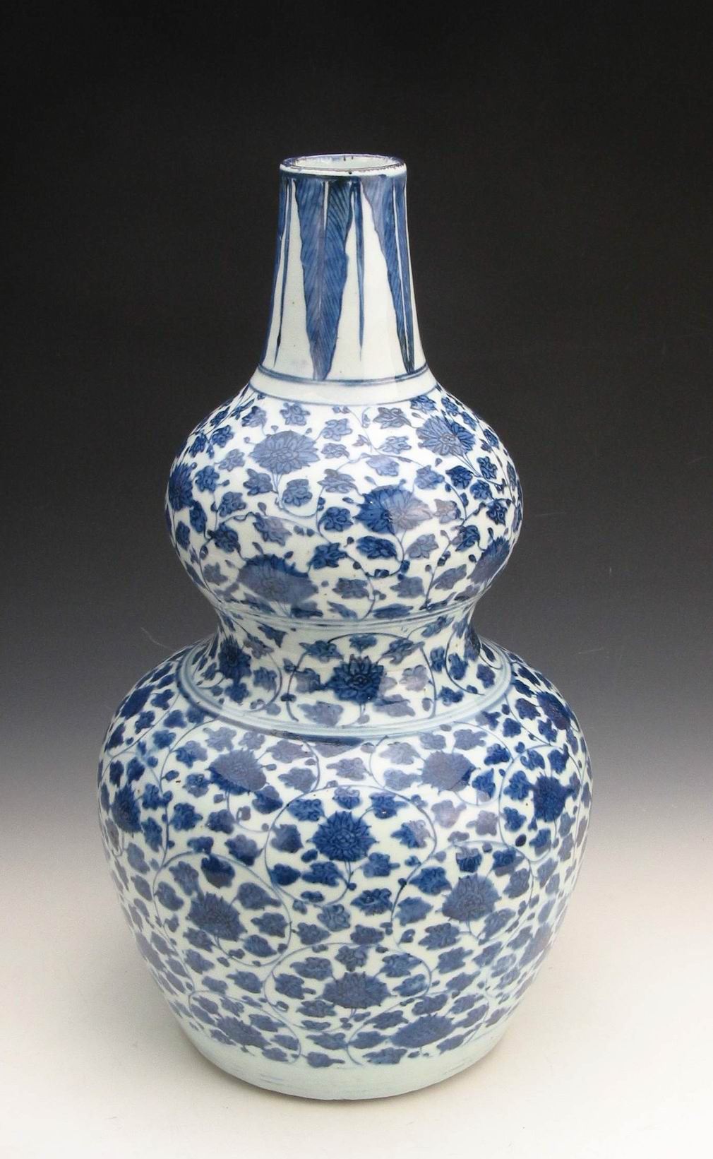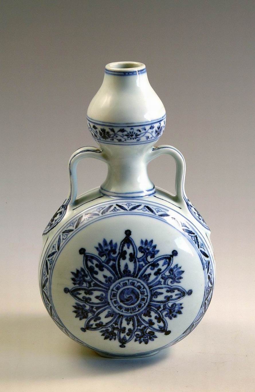 《明青花缠枝菊花葫芦瓶》