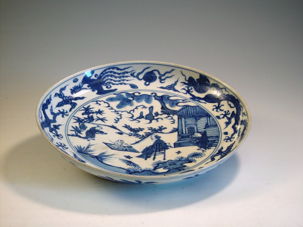 《明万历款青花人物盘》