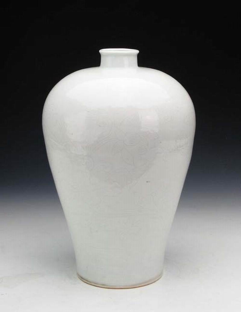 《明永乐白釉暗串枝莲花梅瓶》