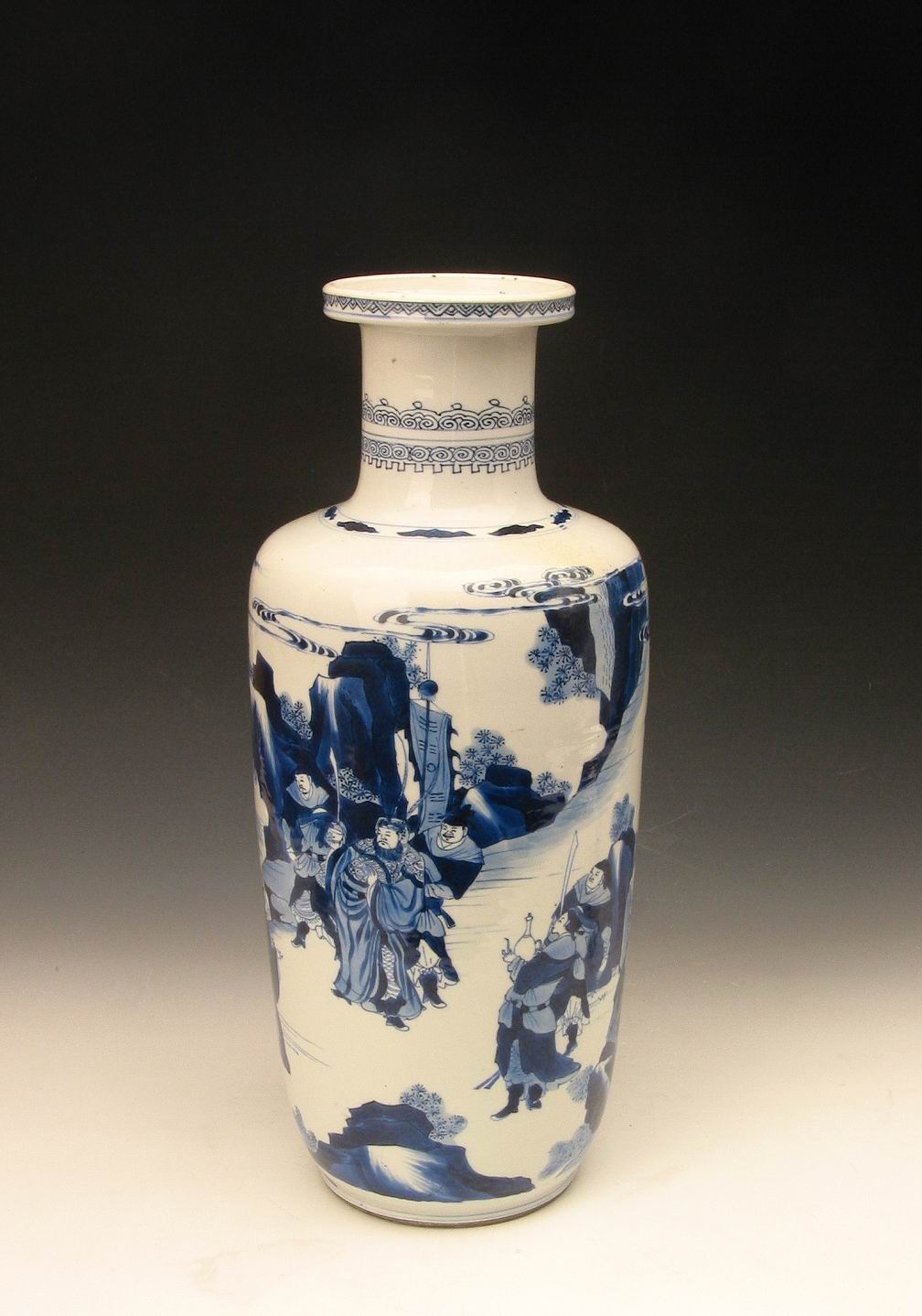 《清青花人物故事棒棰瓶》