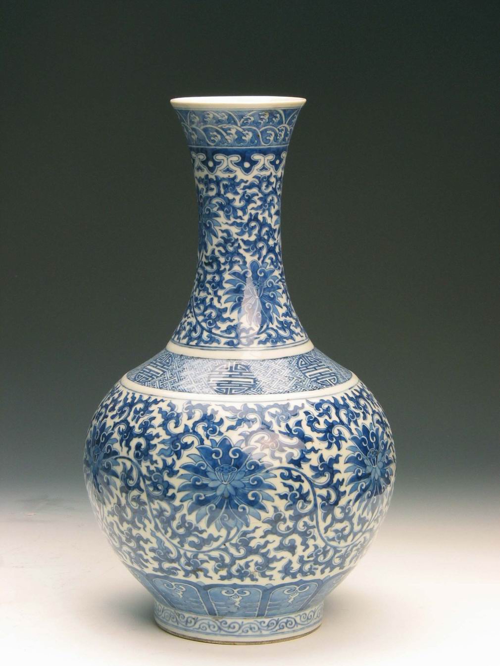 《清康熙款青花番莲瓶》
