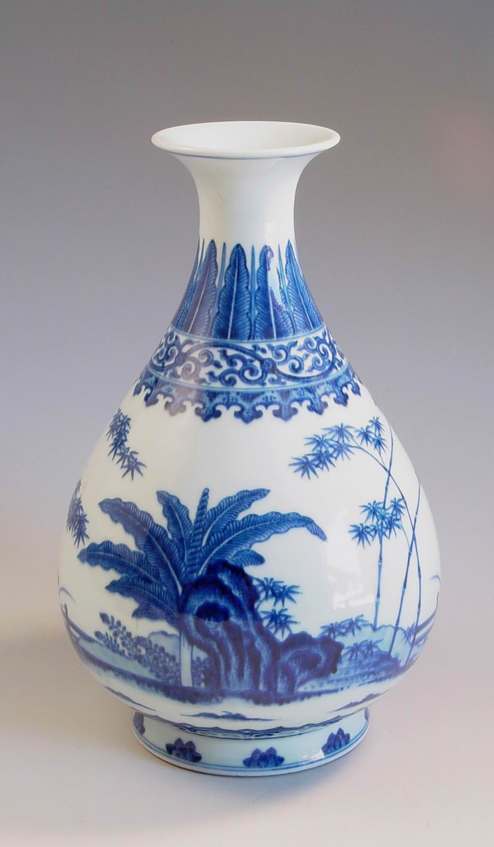 《清乾隆款青花芭蕉竹石玉壶春瓶》