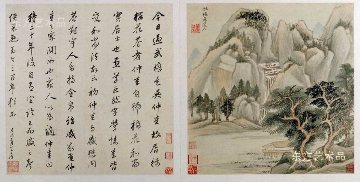 | 《仿古山水》册 第八开 纸本水墨和设色 每开 26.3 x 25.5 |