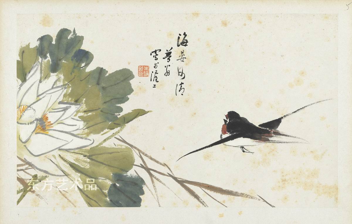 | 朱偁 花鳥冊 共十二开 紙本設色 24.3 x 40.3 第五开 |
