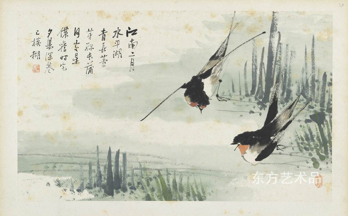 | 朱偁 花鳥冊 共十二开 紙本設色 24.3 x 40.3 第六开 |