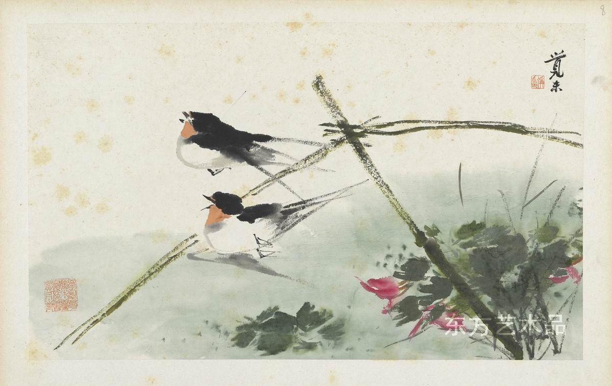| 朱偁 花鳥冊 共十二开 紙本設色 24.3 x 40.3 第九开 |