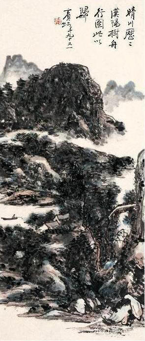 《归舟图》 73.8*32 纸本水墨设色 1954年 黄宾虹 |
