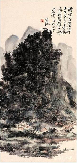 《积石倚崇图》 76.7*36.1 纸本水墨设色二十世纪四十年代 黄宾虹 |
