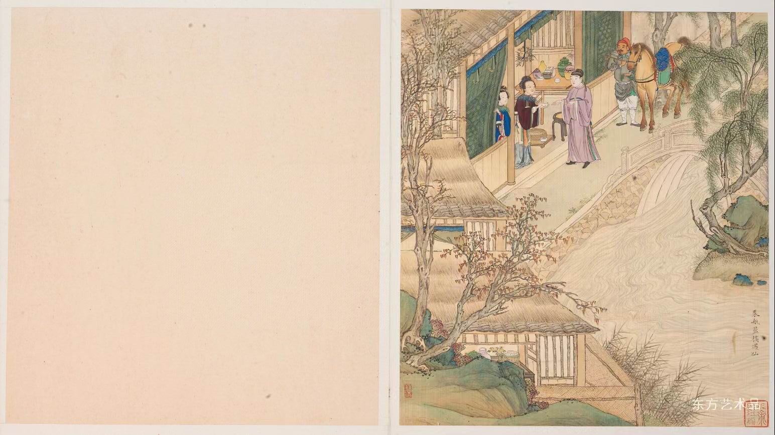 范雪仪〔清〕女,本姓淑,嫁范氏为妻,江苏苏州人氏,生卒年不详。擅人物画,题材以历史故事、神话传奇为主。是清代吴门著名女画家之一。此画册描绘了白传姬人试舞、木兰从军、公孙大姐舞剑器、寿阳梅花妆、交甫解佩、裴航蓝桥遇仙、秦女吹簫、苏惠织锦回文、张敞画眉等历史故事。(藏于北故宫) |
