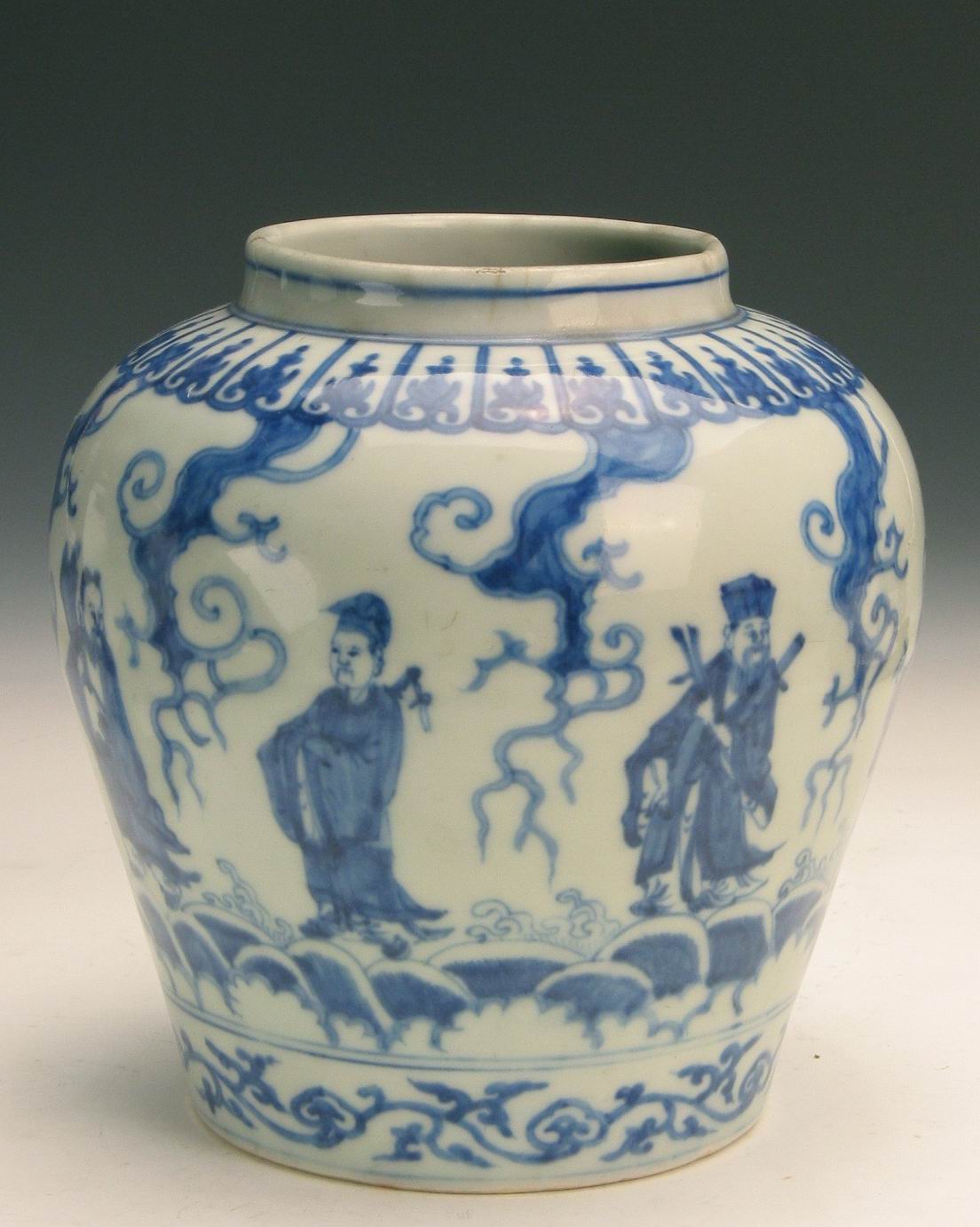 《明嘉靖款青花人物罐》