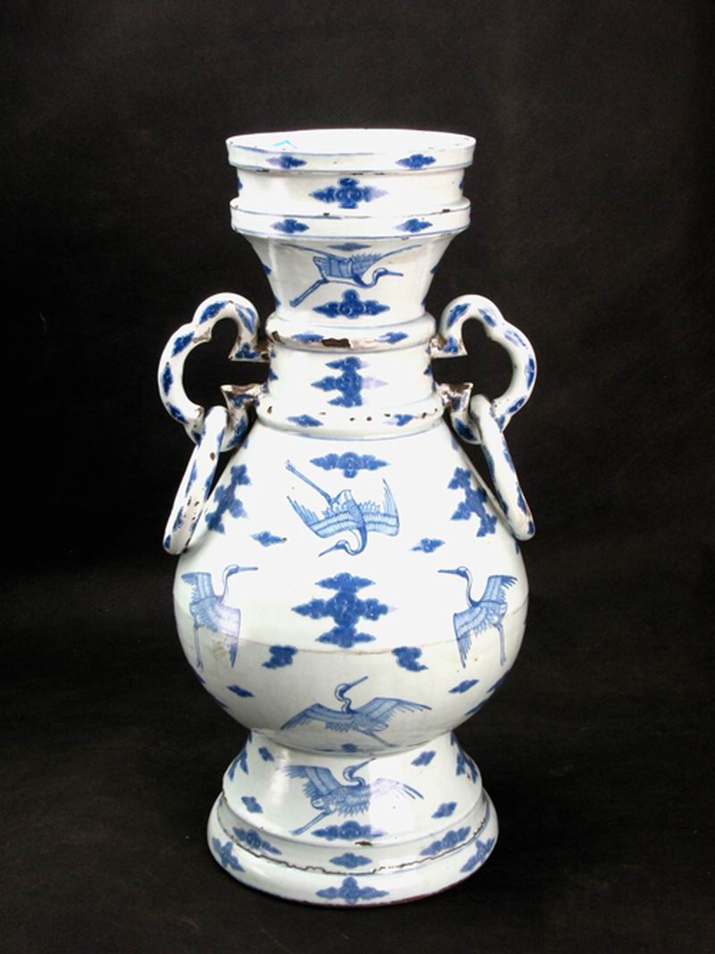 《明青花云鹤双活环耳大瓶》