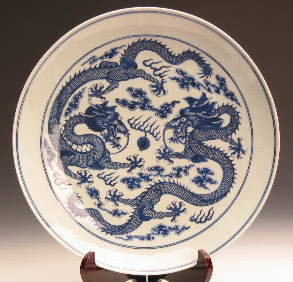 《清光绪款青花双龙盘》