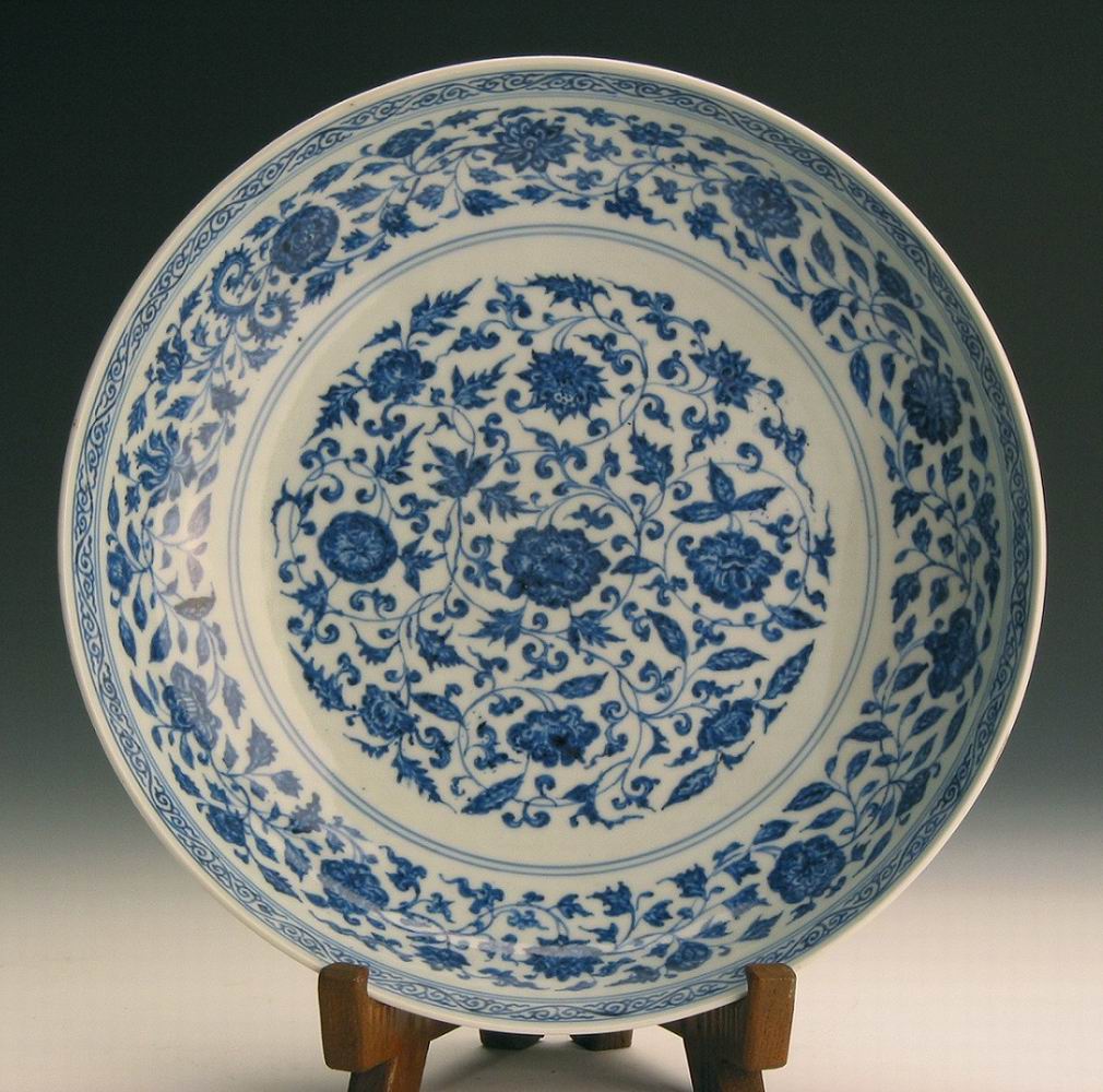 《清雍正款青花勾莲大盘》